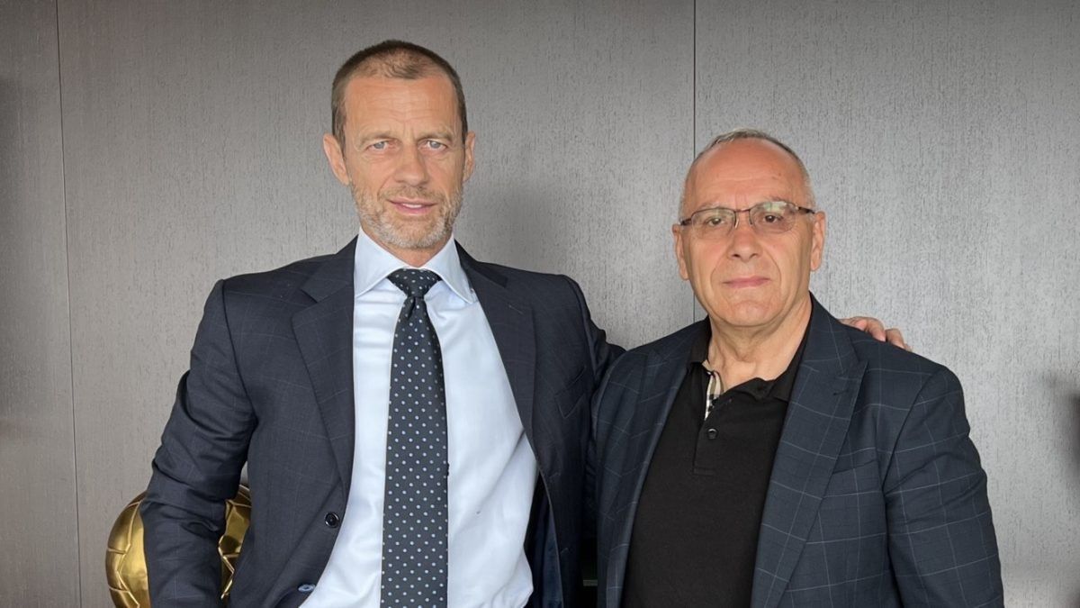 Presidenti i UEFA-s e pret në zyre të tij në takim Agim Ademin