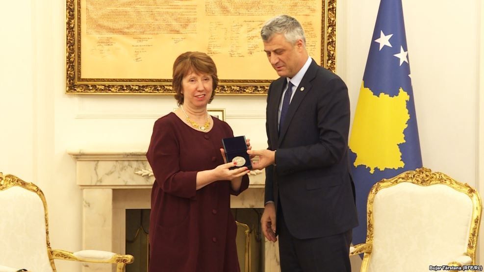 Baronesha Ashton është dekoruar nga Presidenti i Kosovës, Hashim Thaçi me Medaljen Presidenciale të Meritave, për kontributin e saj në proceset e dialogut të zhvilluar në Bruksel ndërmjet Republikës së Kosovës dhe Serbisë.