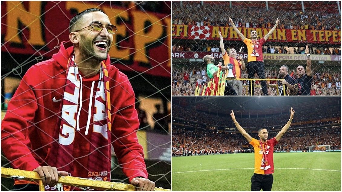 Ziyech qëndroi në vendin ku qëndron udhëheqësi i tifozëve, ndërsa drejtonte ata. Atij pastaj iu dha një fanellë dhe shall i Galatasaray.