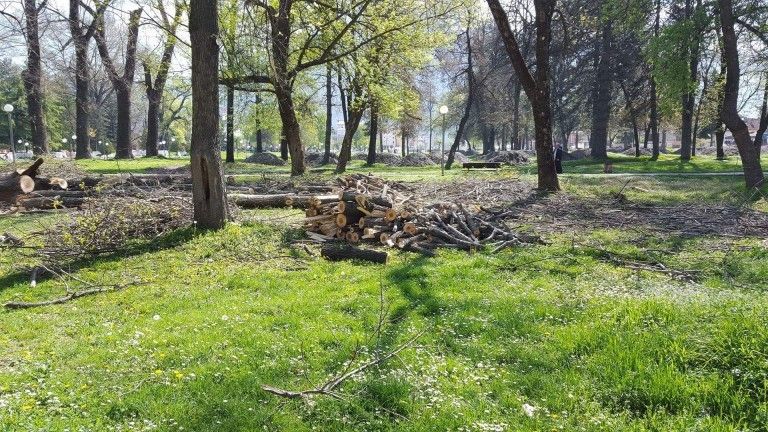 Telegrafistat na dërgojnë fotografi ku shihen drunj të prerë tek parku i madh në Gostivar, afër lumit Vardar.
