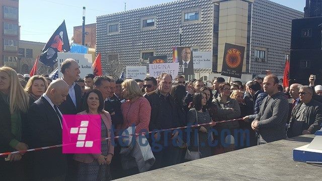 Në rendin e parë të protestës shihen edhe Daut Haradinaj e Pal Lekaj.