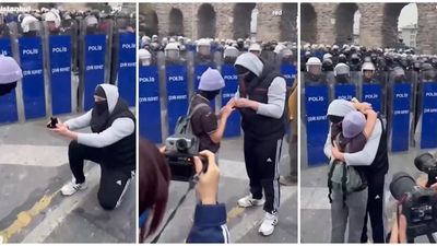 Protestuesi në Stamboll i propozon të dashurës para kordonit të policisë – pamje nga ky moment romantik