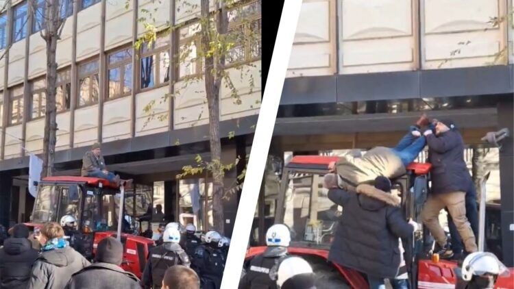 Protestuesi shfaqet me traktor në Beograd, policia serbe e tërheq zvarrë