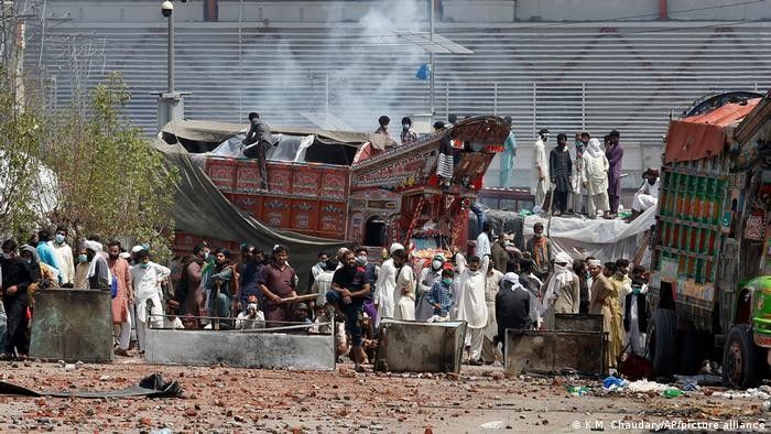 Protestuesit, mbështetës të partisë së ndaluar radikale islamike TLP, po protestojnë për arrestimin e një prej liderëve të tyre, i cili u burgos për kërkesën e dëbimit të ambasadorit francez nga Pakistani.