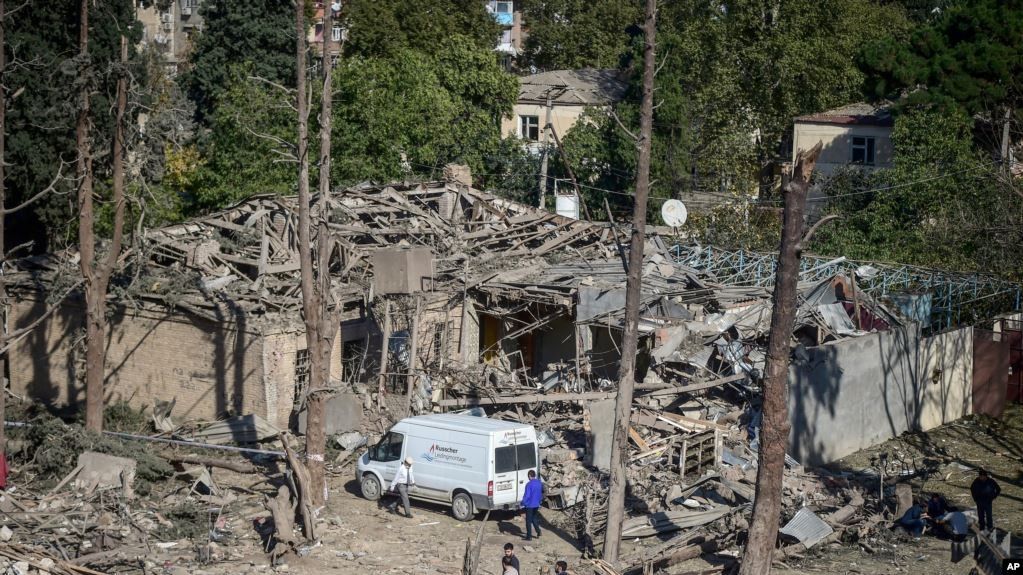 Azerbajxhani tha se një raketë goditi të shtunën objekte të banuara në qytetin e Ganjas, duke vrarë nëntë persona. Sulmi ndodhi vetëm disa orë pasi hyri në fuqi armëpushimi. Armenia mohoi të kishte përgjegjësi mbi ngjarjen.
