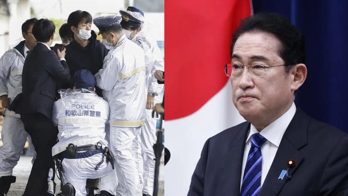 Në video shihet se si në drejtim të Kishidas është hedhur një lloj mjeti shpërthyes, të cilin një nga sigurimet e tij fillimisht e ndal me një çantë dhe më pas e godet me shkelma.
