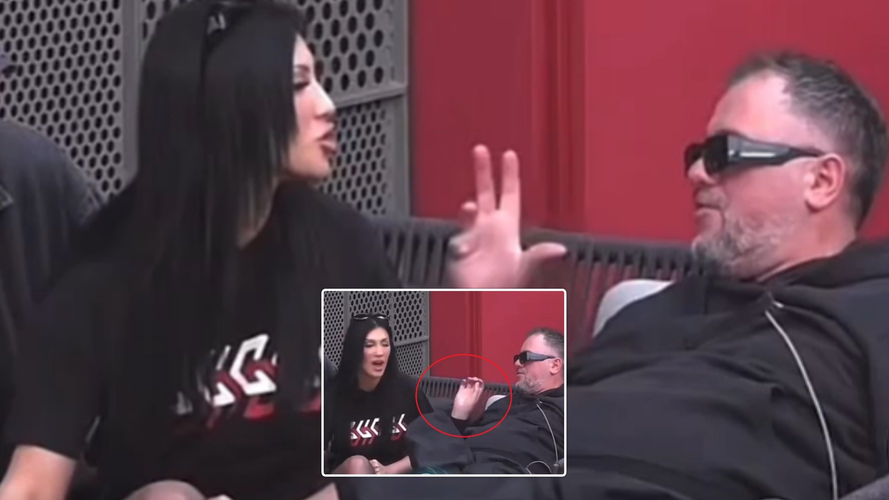 Por, në videon e publikuar së fundmi Santiana dhe Buci janë të ulur afër dhe në një moment ai ia vendos dorën tek të pasmet duke e prekur disa herë.