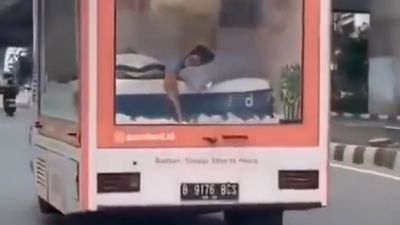 This isn’t a performance art stunt, but an advertising campaign by an Indonesian mattress brand.