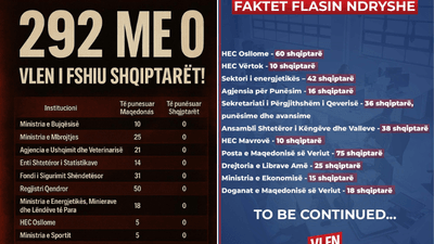 "Prej disa javësh, eksponentë të BDI-së po përhapin shifra të rreme, duke u përpjekur të krijojnë përshtypjen se shqiptarët po përjashtohen nga institucionet e shtetit. Këto janë gënjeshtra të ulëta nga ata që për 20 vite ndërtuan një sistem ku për t’u punësuar një shqiptar duhej të paguante 3 deri në 5 mijë euro tek sherifët lokalë të BDI-së, përndryshe dera e shtetit nuk hapej! Sot, shqiptarët nuk paguajnë më ryshfet për t’u punësuar, sot punësohen me dinjitet dhe me barazi!", thonë nga VLEN, ndërsa kanë publikuar edhe shifra që sipas tyre janë të saktat sa i përket punësimit të shqiptarëve.