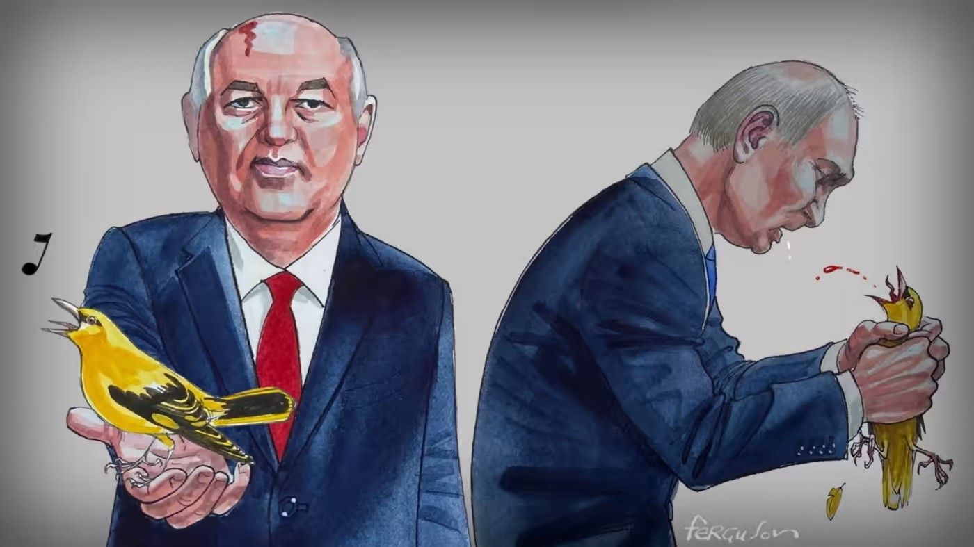 Ideja për dinjitetin njerëzor e ish-udhëheqësit sovjetik shtrihej në lirinë e fjalës. Ishte gjithashtu "habi dhe poshtërim" që, nën sistemin sovjetik, njerëzit e arsimuar duhej të jetonin në një botë të gënjeshtrave zyrtare, të sloganeve dhe të censurës. Gorbaçovi e ndryshoi këtë duke e liruar shtypin dhe industritë krijuese, duke i liruar disidentët dhe duke e lejuar rifillimin e kërkimeve të duhura historike. Putini po e kthen Rusinë në represionin e stilit sovjetik - teksa shtyp mediat e fundit të pavarura, burgos opozitën dhe për të përbën vepër penale nëse pranon se Rusia është në luftë.