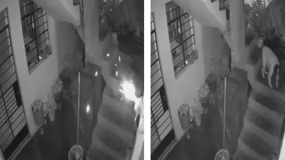 Pamjet e kamerave të sigurisë tregojnë Manchis duke lehur dhe duke vrapuar poshtë shkallëve drejt eksplozivit.