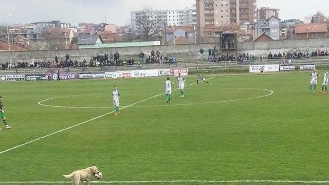 Kjo pamje ndodhi të dielën në stadiumin “Riza Lushta”, derisa lojtarët duke mos pasur se çfarë të bëjnë, vetëm shikonin qenin që ndodhej pranë vijës anësore, shkruan GazetaOlle.com.