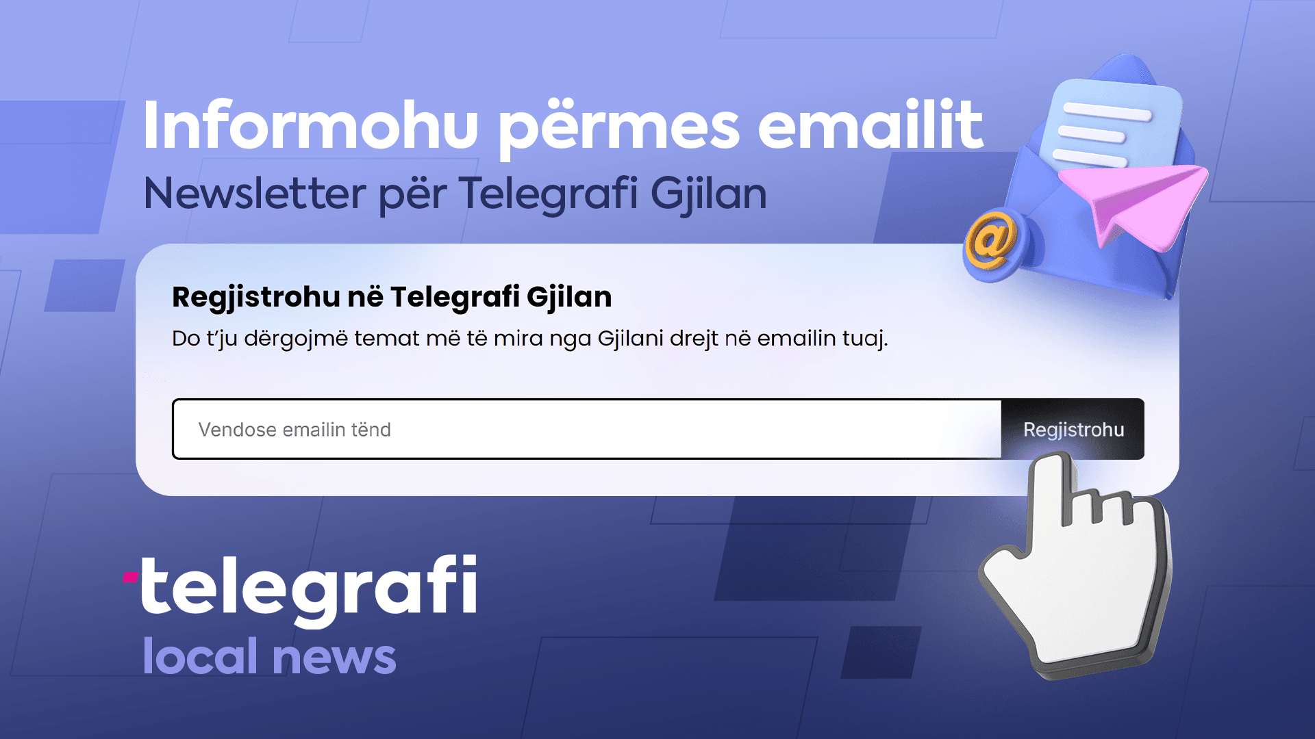 Telegrafi Gjilan do të jetë së bashku me ju edhe nëpërmjet emailit. Po fillojmë me ‘Newsletterin e Telegrafit Gjilan’, ku temat e përzgjedhura do t'ju vijnë drejtpërdrejt në emailin tuaj, pa u lodhur ju fare!