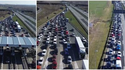 Para pikës së pagesës pranë Novi Sadit, automjetet kanë zënë kilometra të tërë autostrade, duke pritur në dy kolona për t’u afruar te stacioni i pagesës dhe për të hyrë në qytet.
