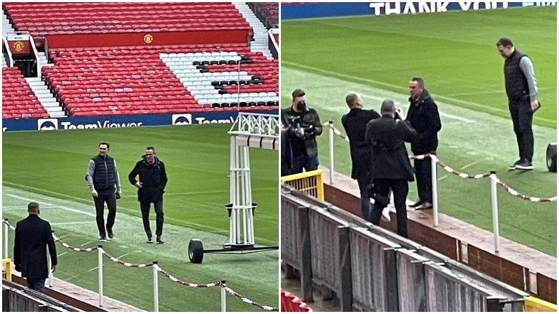 Rangnick sa ishte duke e bërë xhiron ndaloi dhe bisedoi me ish-mbrojtësin Wes Brown, i cili po kalonte nëpër fushë.