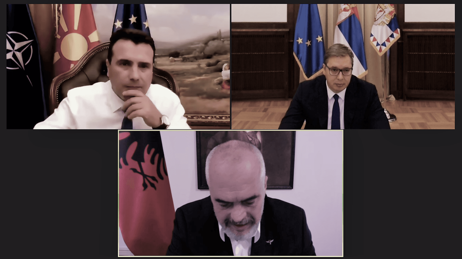 Liderët e Shqipërisë, Maqedonisë së Veriut dhe Serbisë, Kryeministrat Edi Rama, Zoran Zaev dhe Presidenti Aleksandar Vuçiq, zhvilluan sot një takim përmes një konference online për të rinovuar iniciativën e bashkëpunimit rajonal të nisur vitin e kaluar, njofton Telegrafi Maqedoni.