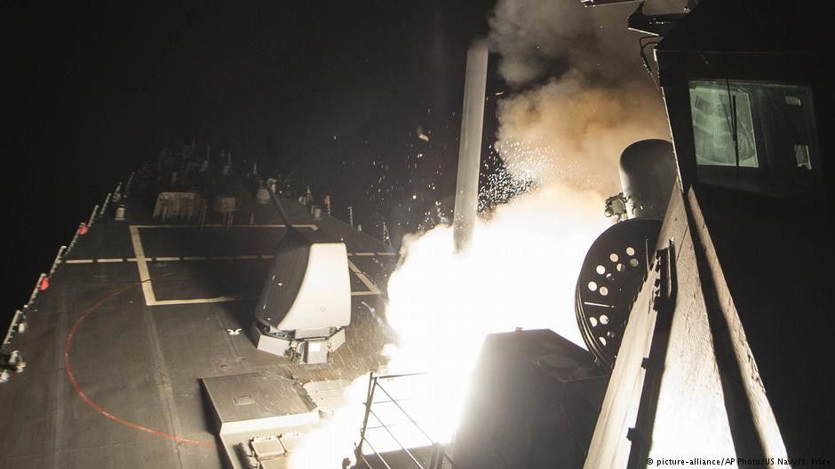 Pak ditë pas sulmit me gaz toksik në Siri, ku humbën jetën 86 vetë, mes tyre mjaft fëmijë, ushtria amerikane me raketa një aeroport të ushtrisë siriane. Presidenti, Donald Trump tha se ai e ka urdhëruar sulmin. Kjo është hera e parë, që SHBA sulmon trupat qeveritare siriane, deri më tani sulmet e saj përqëndroheshin në luftën kundër xhihadistëve të Shtetit Islamik. Sipas të dhënave siriane kanë humbur jetën 5 vetë dhe janë plagosur 7 të tjerë. Sulmi u krye nga bazat amerikane në Detin Mesdhe dhe konsiderohet si veprim unikal.