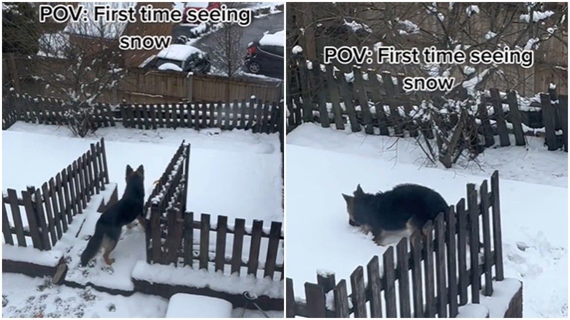 Një qen i racës Shepherd fitoi zemrat e të gjithëve me reagimin e tij kur pa borën për herë të parë në jetën e tij.