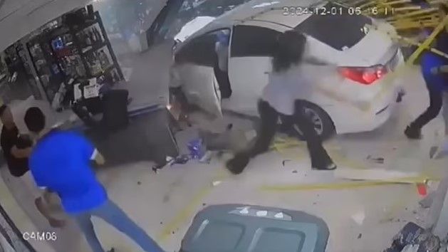 E dy gra më pas janë filmuar duke vrapuar drejt dyqanit për t’i alarmuar punonjësit, po pak sekonda më pas Sa futet brenda me veturë – duke goditur një grua dhe një burrë që ishin punonjës të këtij biznesi.