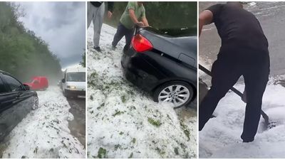 Pamjet e shpërndara në rrjetet sociale tregojnë rrugë dhe oborre të përmbytura, me nivele të larta të ujit dhe shtresa të dendura breshëri në shumë lokacione.