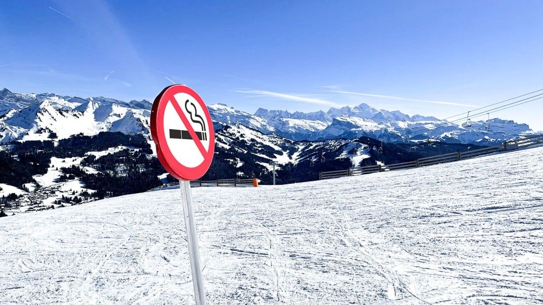 Një vijë e kuqe mbi një cigare - simboli universal i ndalimit të pirjes së duhanit - do të jetë risija që do t'i pret entuziastët e skive nga e gjithë bota në fshatin e vogël Les Gets në Alpet Franceze.