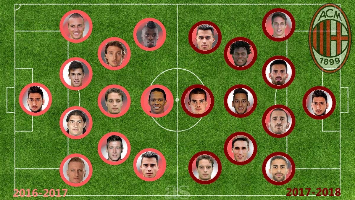 Formacioni i mundshëm i Milanit me blerjet e deritanishme në sezon e ri 2017-2018: Donnarumma, Conti, Musacchio, Bonucci, Ricardo Rodriguez; Kessie, Calhanoglu, Biglia; Suso, Andre Silva, Bonaventura.