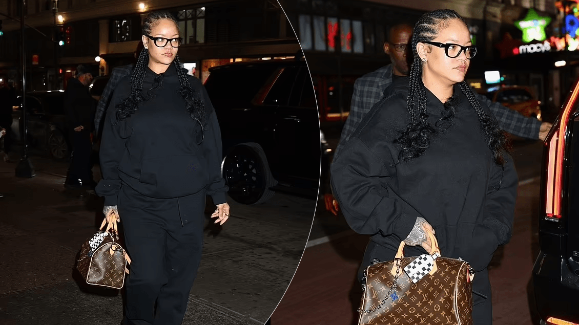 Ajo ishte veshur thjesht me një kapuç të zi, pantallona sportive dhe syze të errëta, duke mbajtur një çantë Louis Vuitton.
