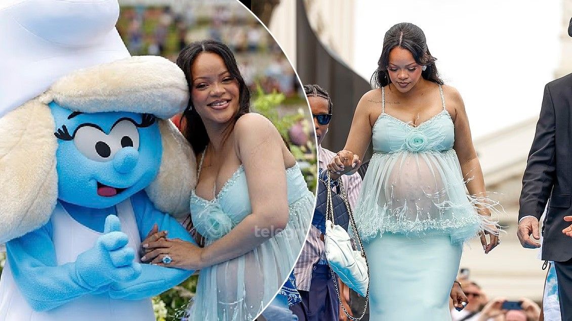 Rihanna i mahniti të pranishmit në premierën globale të filmit të animuar “The Smurfs Movie” në Bruksel, teksa u shfaq në tapetin e kuq me një fustan rrjetë ngjyrë bruz që nxirrte në pah barkun e saj të rrumbullakosur nga shtatzënia e tretë.