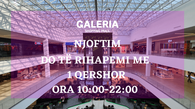 Galeria Shopping Mall do të rifillojë aktivitetin nga data 1 Qershor, ditë e hënë nga ora 10:00 deri në 22:00.