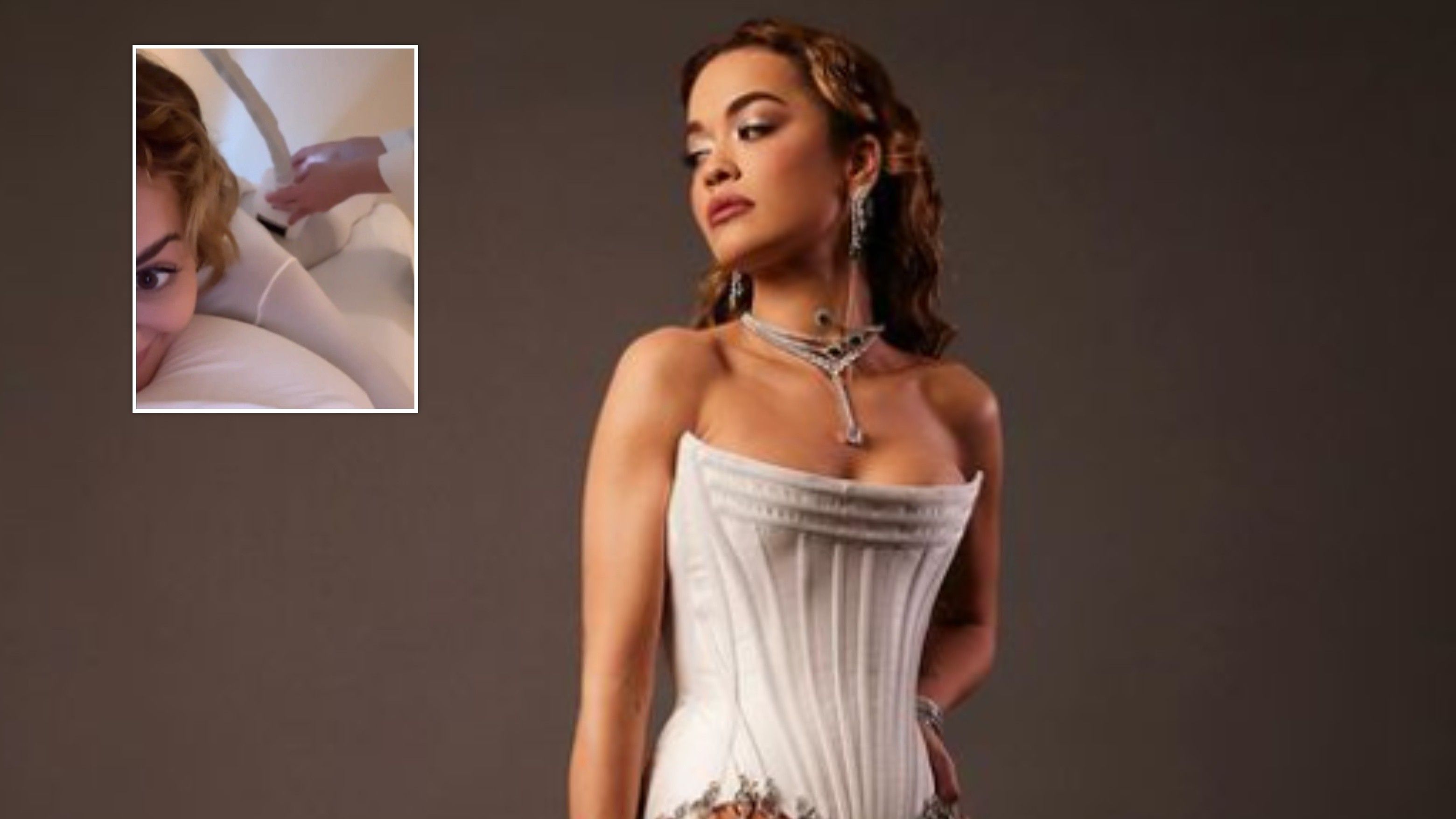 Rita Ora duket e mahnitshme në të bardha teksa përgatitet për xhirimet e klipit të ri muzikor
