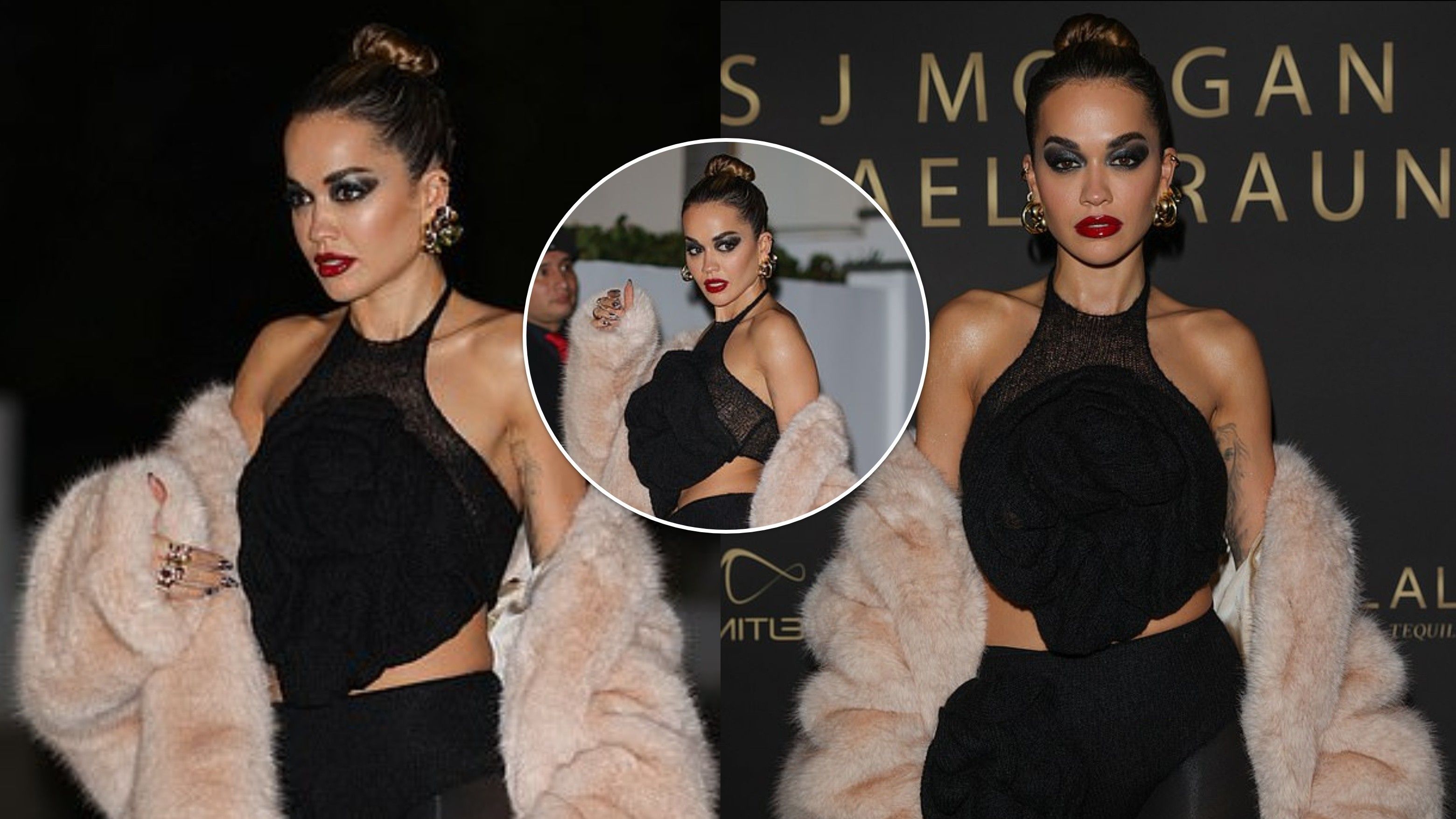 Rita tregoi figurën e saj të pabesueshme me një bluzë të zezë rrjetë dhe pantallona të tejdukshme me bel të lartë.