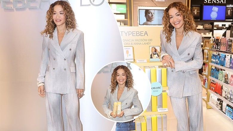 Rita Ora ishte mishërimi i klasikës me një kostum elegant të hirtë, teksa promovoi markën e saj të kujdesit për flokët, "Typebea", në Varshavë, Poloni.