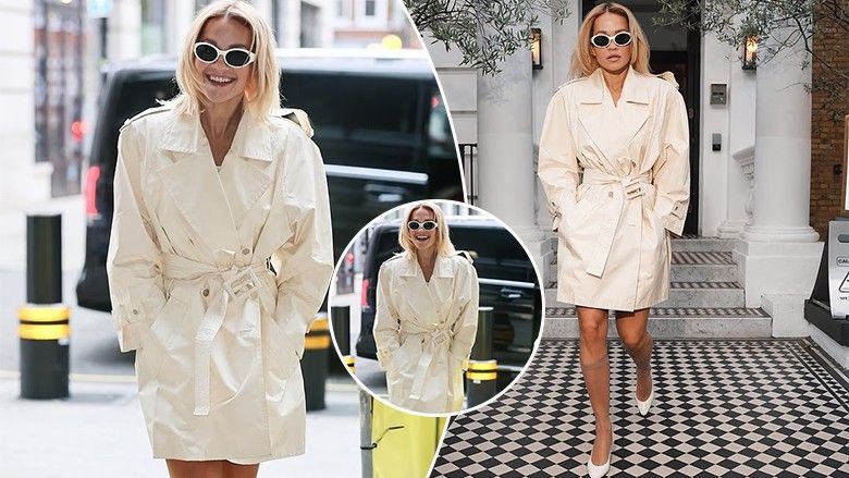 Rita Ora duket senzacionale me një xhaketë të bardhë, teksa fotografohet rrugëve të Londrës duke shkuar në BBC Radio 2