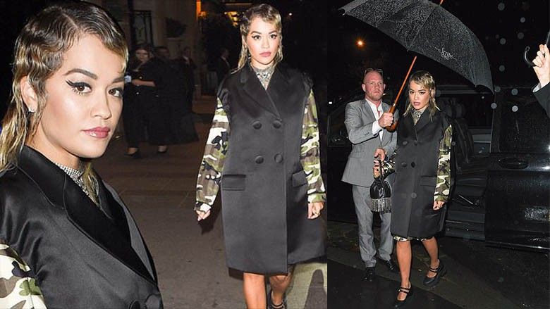 Rita Ora kombinon pallton e zezë me dizajnin ushtarak, merr sërish vëmendje në Paris
