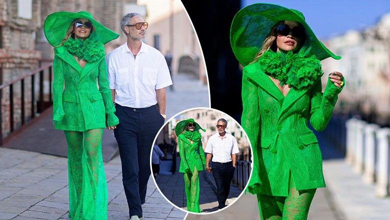 Rita Ora një damë e vërtetë në të gjelbër krah bashkëshortit në rrugët e Venedikut