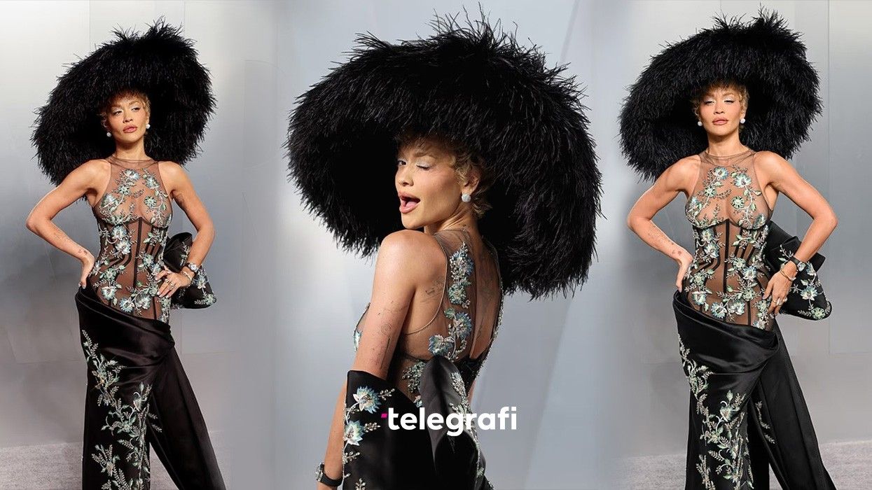 Rita Ora tërheq vëmendjen në festën e Oscars me kapelen gjigante me pupla