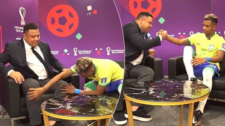 Tifozët janë në mëdyshje pasi ylli brazilian, Rodrygo, është xhiruar duke fërkuar këmbët e ‘Fenomenit’ Ronaldo për fat.