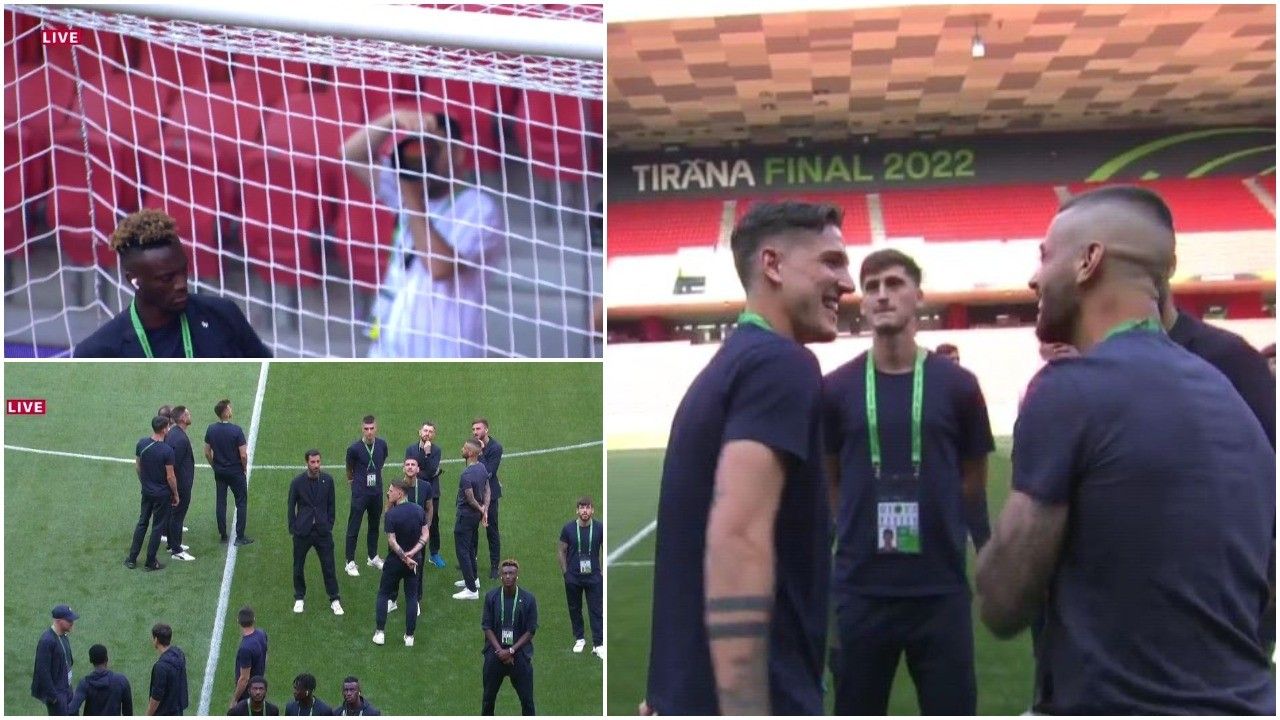 Ndërkohë që lojtarët e ekipit verdhekuq ishin ndarë në grupime të vogla dhe po bisedonin qetësisht mes tyre, Tammy Abraham shëtiti nëpër fushë, madje bëri provat e tij edhe te dy shtyllave të portave.