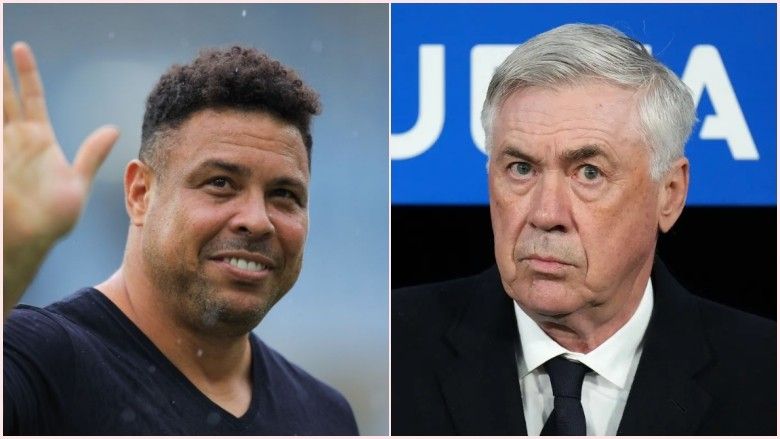 Ronaldo shpreson që Carlo Ancelotti 'mund t'i rregullojë' problemet te Brazili, ndërsa bën tifo për Interin në finalen e Ligës së Kampionëve kundër Paris Saint-Germain.