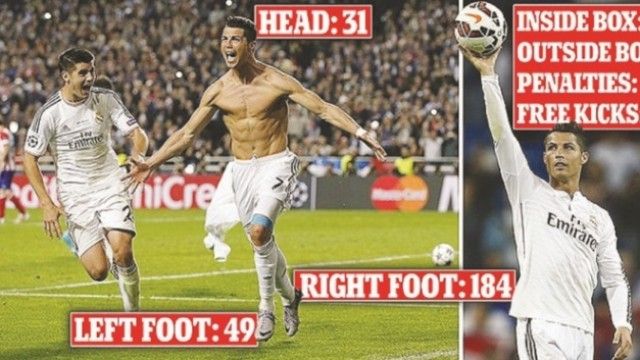 Me këmbën e majtë, sulmuesi portugez ka shënuar plot 49 gola, ndërsa 31 nga to i ka shënuar me kokë.
