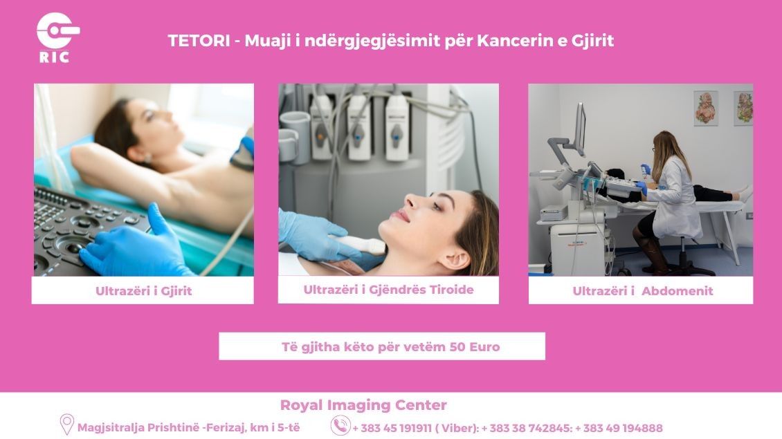 Tetori është një muaj i rëndësishëm për shëndetin global, i dedikuar Ndërgjegjësimit për Kancerin e Gjirit, dhe për të përkrahur këtë muaj qendra diagnostike Royal Imaging Center, e pajisur me teknologjinë më moderne dhe një staf të specializuar me përvojë ndërkombëtare, po ofron një mundësi të veçantë për diagnostikim të hershëm dhe gjithëpërfshirës për vetëm 50 euro.