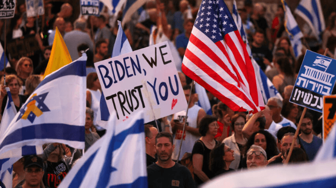 Bëhet e ditur se rreth 120 mijë njerëz marshuan rrugëve të qytetit izraelit për t’i bërë thirrje qeverisë që të pranojë marrëveshjen e armëpushimit të përshkruar nga presidenti amerikan, Joe Biden.