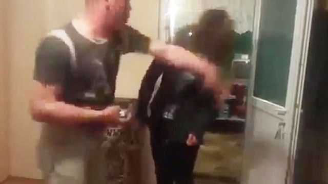 “Pa shiko, paske vënë edhe buzëkuq”, i thotë babai vajzës, pasi ia ka kapur flokët në grusht, e më pas godet edhe vajzën tjetër.