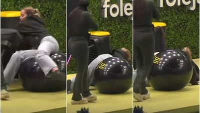 Elijona u pa e ulur në një top të madh, teksa nuk arriti të mbante ekuilibrin dhe përfundoi duke u rrëzuar.