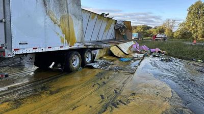 Disa korsi të një autostrade në qarkun Franklin të Illinois u mbyllën, ndërsa ekipet punonin për të pastruar rrëmujën e lënë nga një kamion i rrokullisur të cilit i është derdhur ngarkesa e tij me salcë molle.