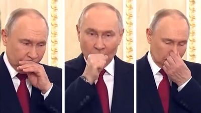 Në videon e pamontuar, Putin mund të shihej duke pushuar në mes të fjalisë dhe duke kollitur vazhdimisht ndërsa i bënte gjeste dikujt jashtë kuadrit, transmeton Telegrafi.