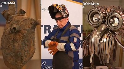 Një saldues i kthen materialet e zakonshme si dërrasat e zinxhirët e biçikletave në skulptura, duke e shndërruar korridorin e Universitetit Galati të Rumanisë në një ekspozitë unike arti.