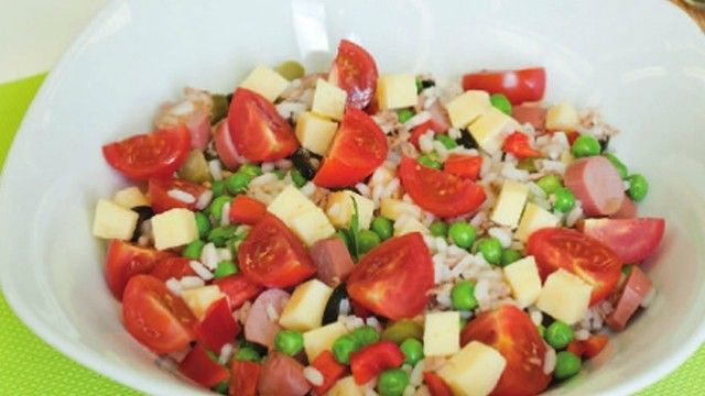 E shpëlajmë me ujë të ftohtë të bollshëm dhe më pas pasi kemi grirë përbërësit me radhë i bashkojmë dhe sallatën e vendosim në frigorifer për një orë.