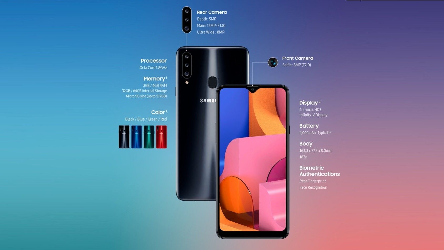 Duke peshuar 183g, dimensionet e A20s do të maten në 163.3x77.5x8.0 mm.