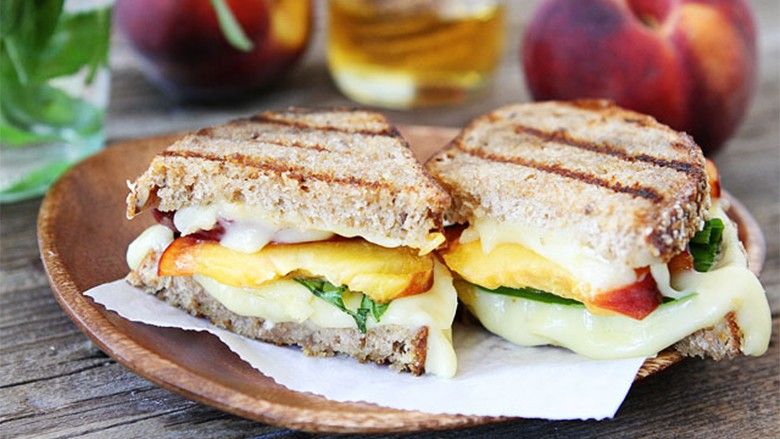 Përbërësit:▪ 8 feta buke ▪ 4 lugë çaji mustarde ▪ piper ▪ 4 feta djathë pice ▪ 120 g proshutë në feta ▪ 2 pjeshkë mesatare të qëruara dhe të ndara në feta ▪ 1 lugë gjelle vaj ulliriPërgatitja: